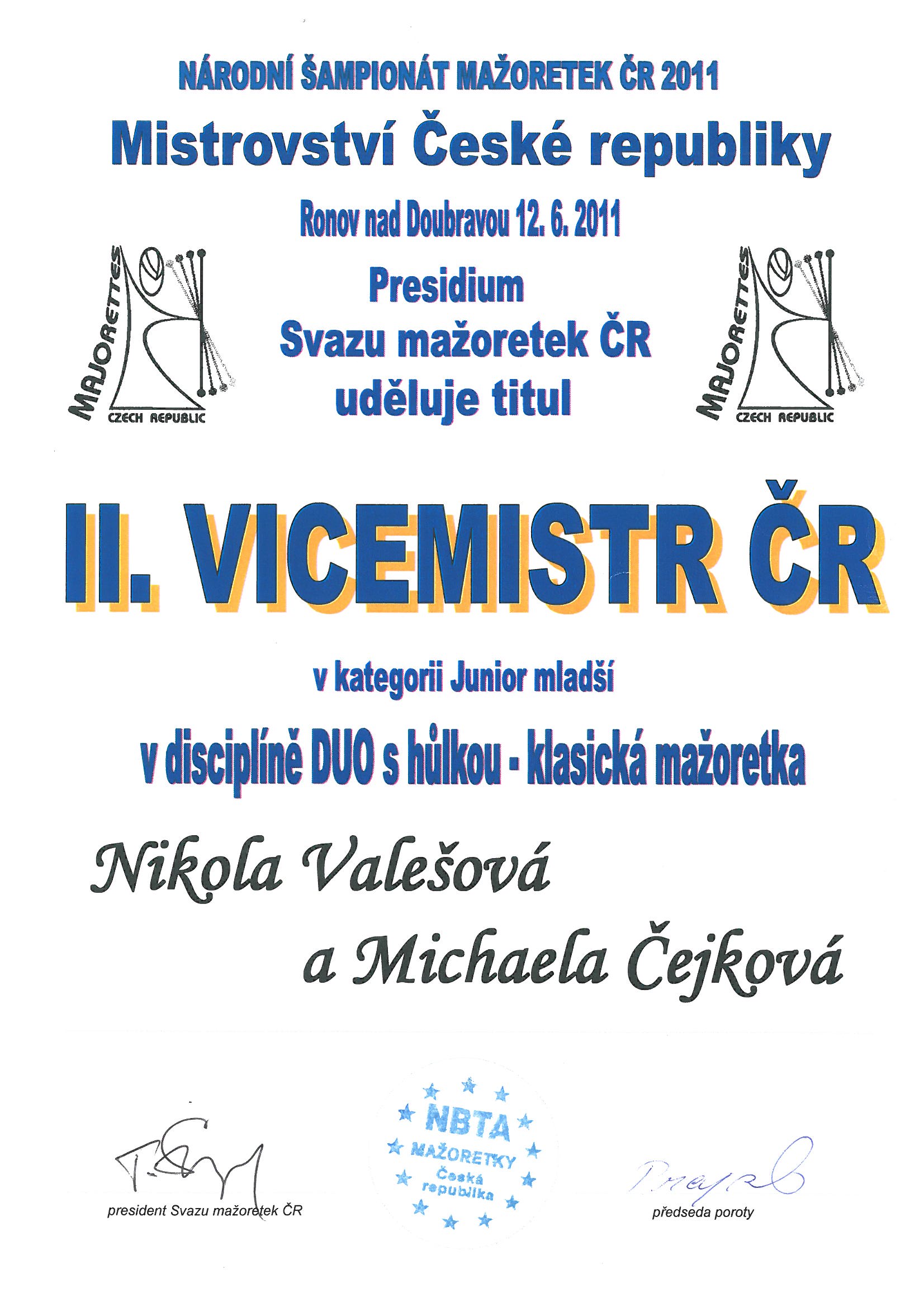 II.VICEMISTR České republiky - Míša Čejková a Nikča Valešová