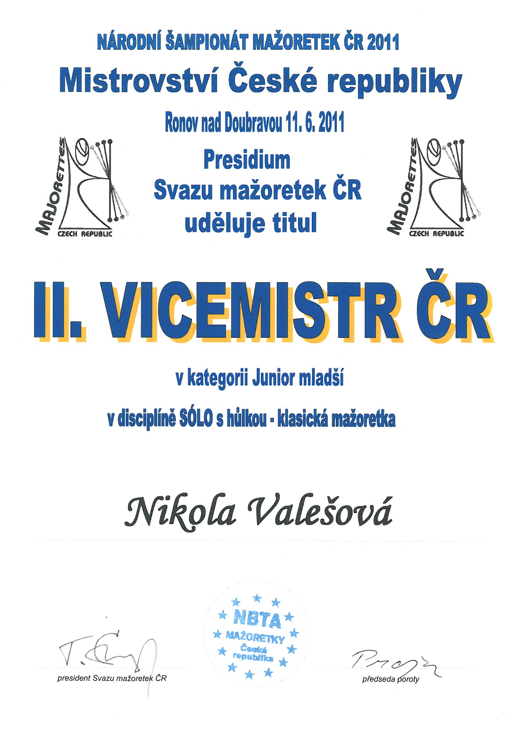 II.VICEMISTR České republiky - Nikola Valešová